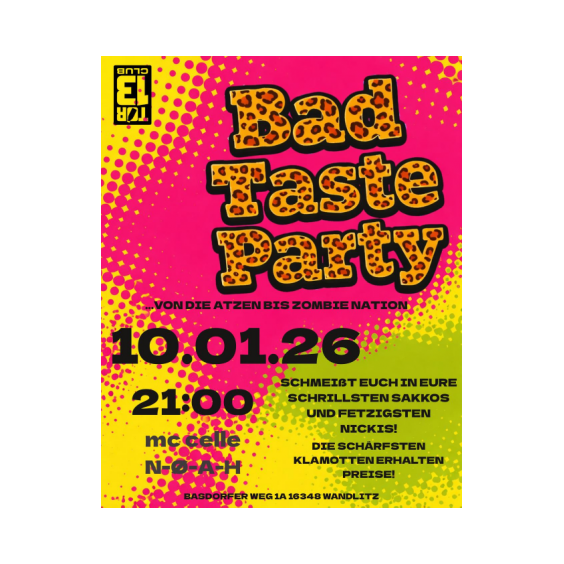 10.01.2026 Bad Taste Party / Mixed Music mit NOAH & mc celle